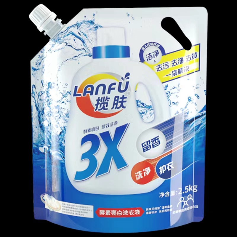 全自動給袋式洗衣液包裝機(jī),可用于包裝四邊封袋、自立袋、手提袋、壺口袋,拉鏈袋、M袋、異型袋、紙袋復(fù)合袋、帶嘴袋等洗衣液